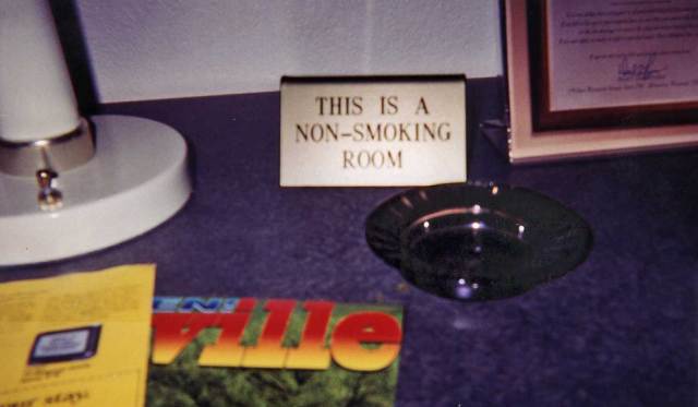 We opened our room and found it quite serviceable. It wasn’t lavish, but it was comfortable. I had another laugh at what I should have seen as the second bad omen. The room was non-smoking and even had a small plaque on the desk to make it abundantly clear. A small plaque right next to the ashtray. I took a picture, because, hey, that’s funny. That’s when I noticed the magazine full of helpful tips and coupons for great places to visit in Nashville. I found this odd since we were in, you know, Chattanooga. Again, I ignored what I should have taken as yet another bad omen.